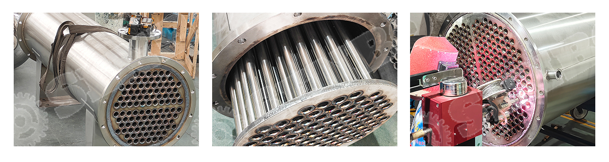Heat transfer principle: heat and cold for heat transfer of two kinds of fluid, one in the pipe flow, known as pipe fluid;The other flow outside the tube is called shell - side fluid.In order to improve the heat transfer coefficient of the fluid outside the tube, several baffles are usually installed in the shell.The baffle can increase the fluid velocity of the shell side, senbofluid force the fluid to cross the tube bundle several times according to the prescribed route, and enhance the degree of fluid turbulence.The heat exchange pipes can be arranged in equilateral triangle or square on the tube plate.The equilateral triangle has compact arrangement, high turbulence and high heat transfer coefficient.The square arrangement makes it convenient to clean the outside of the tube and is suitable for the fluid that is easy to scale.